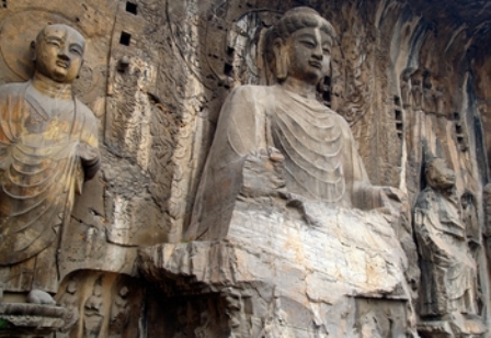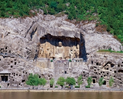 Yung-kang é um dos mais fascinantes lugares Budistas pela surpreendente simplicidade de seus imensos Budas esculpidos na pedra e a delicada ornamentação de seus relêvos narrativos. O trabalho das cavernas-santuários foi iniciado pelo imperador da primeira dinastia Wei, por volta de 460 DC, como uma resposta à perseguição aos Budistas ocorrida nos vinte anos prévios. Nas décadas seguintes, nos penhascos de rocha calcária de Lung-men, durante os séculos 5 e 6, a monumental escultura da dinastia Wei alcançou uma perfeição espiritual e estética jamais repetida. Os Budas gigantes de Yung-kang lembram protótipos indianos. Em Lung-men, os motivos de um Budismo primitivo e do Budismo Mahayana convergem para uma linguagem graciosa, serena e autenticamente Chinesa.